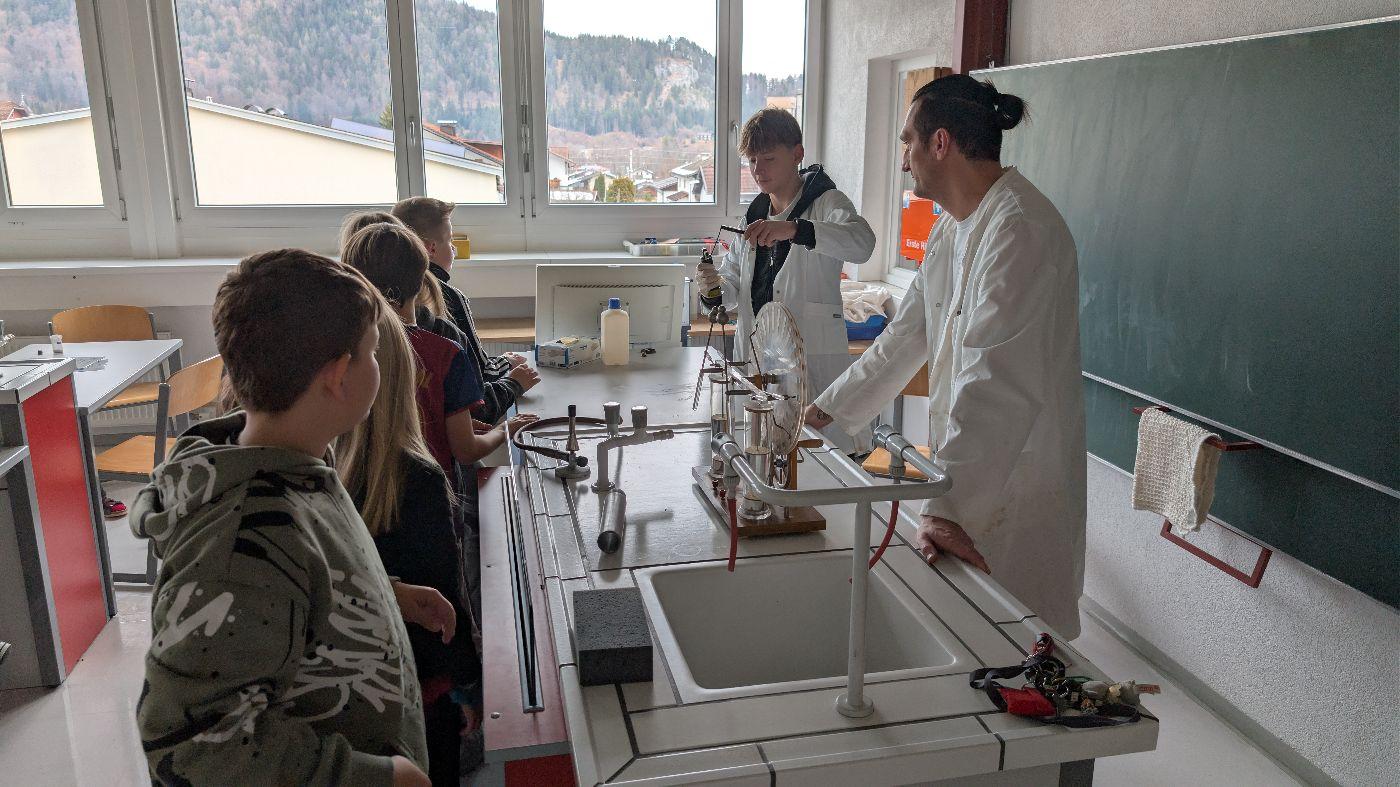 Einen Einblick in den Alltag eines Mittelschülers, einer Mittelschülerin erhielten die Kinder der 4. Klasse Volksschule. Zuerst besuchten sie die Fächer Englisch, Mathematik und Deutsch. Anschließend ging es in einem Stationsbetrieb durchs Haus. Es wurde geturnt, Ernährung und Haushalt vorstellt, ein Einblick in die Erste Hilfe gewonnen, Physik- und Chemie vorgestellt, Versuche in Robotik gemacht und neue Fächer wurden kennengelernt. Voller neuer Eindrücke ging es mittags nach Hause.