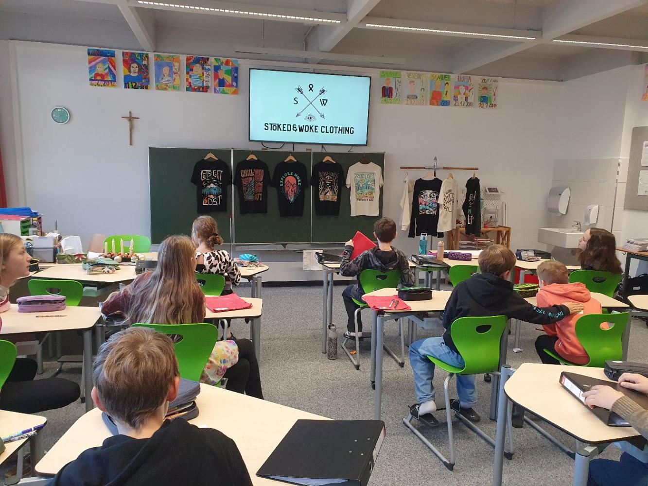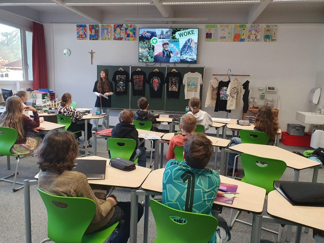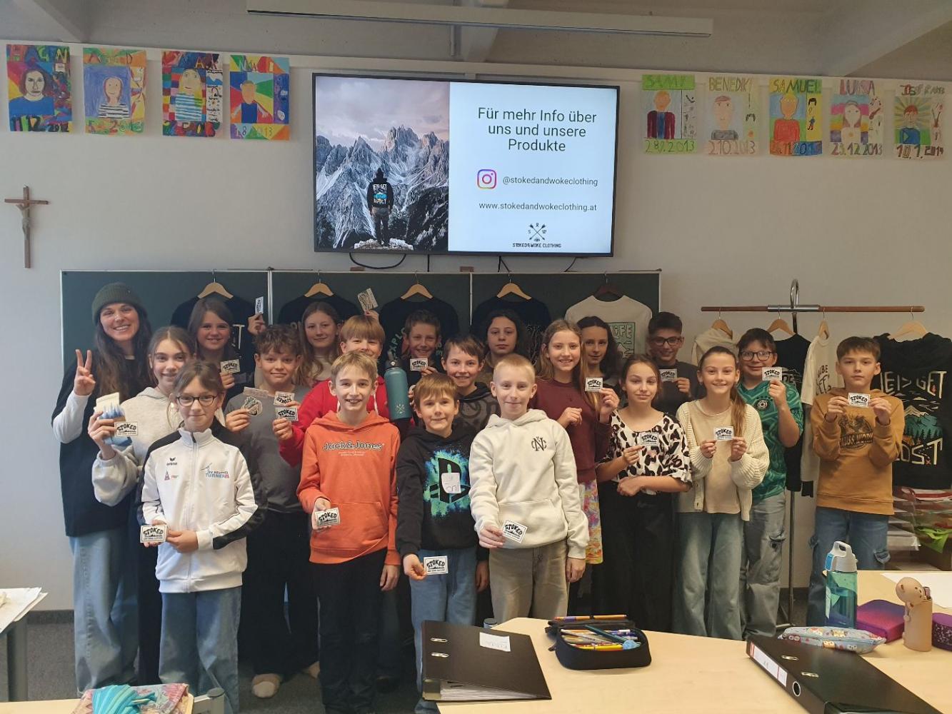 Durchgeführt und fachlich begleitet wurde der Workshop vom nachhaltigen, regionalen Modelabel „Stoked&Woke Clothing“, das den Schülerinnen und Schülern praxisnah zeigte, wie faire und ökologische Modeproduktion aussehen kann. Mit vielen Beispielen und zum Anfassen wurde klar: Jede und jeder kann einen Beitrag leisten – sei es durch bewusstes Einkaufen, das Upcycling alter Kleidung oder durch längere Nutzung hochwertiger Produkte.