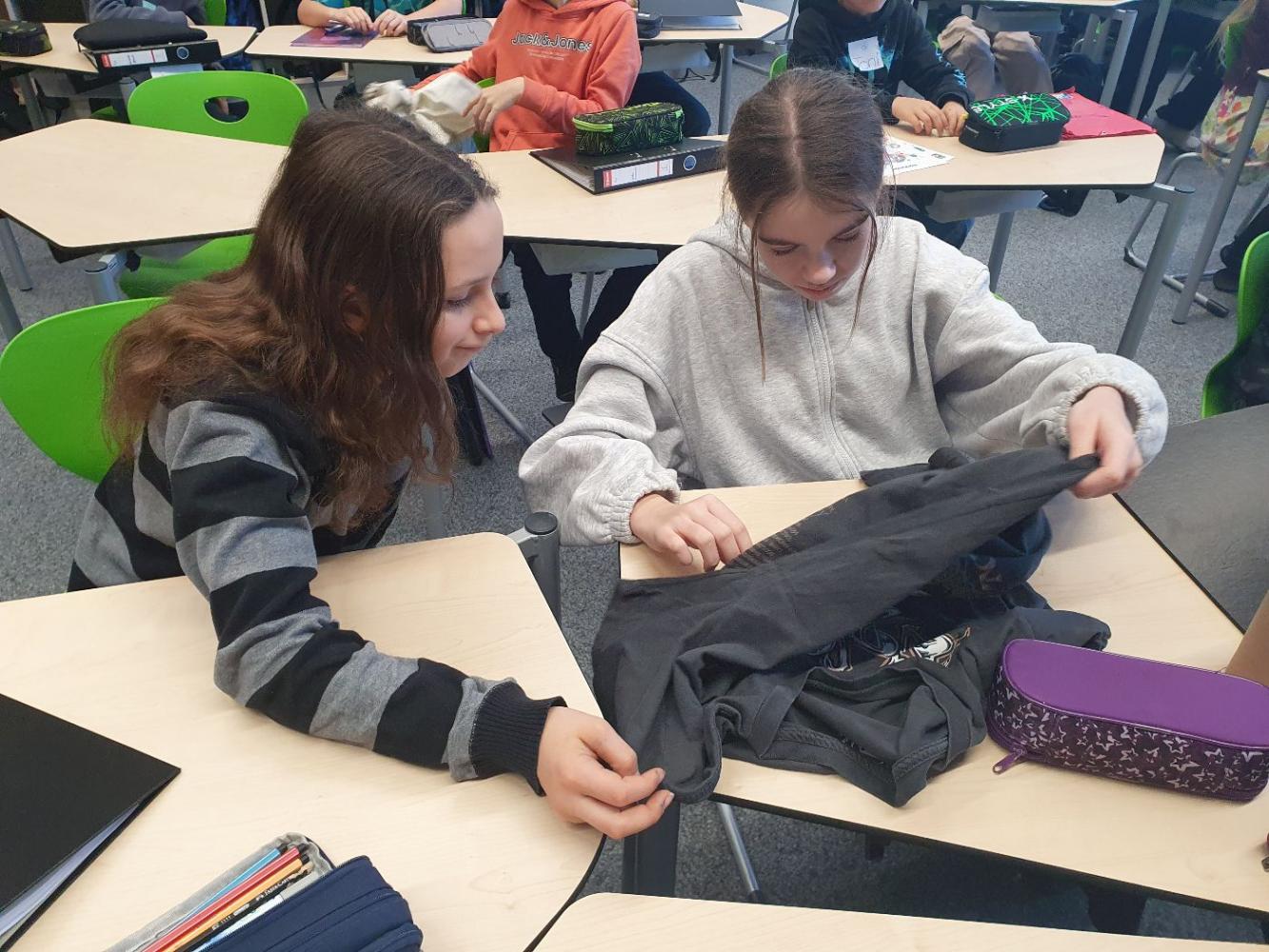 Im Workshop erhielten die Schüler*innen einen umfassenden Einblick in die oft unsichtbaren Seiten der Modebranche. Die Themen reichten von den Arbeitsbedingungen in Bangladesch, über die Qualität von Stoffen und Bekleidung, bis hin zu den Auswirkungen von Fast Fashion auf Umwelt und Gesellschaft. Dabei wurde deutlich, wie stark Konsumentscheidungen mit globalen Produktionsketten verknüpft sind – und wie wichtig ein bewusster und nachhaltiger Umgang mit Kleidung ist.